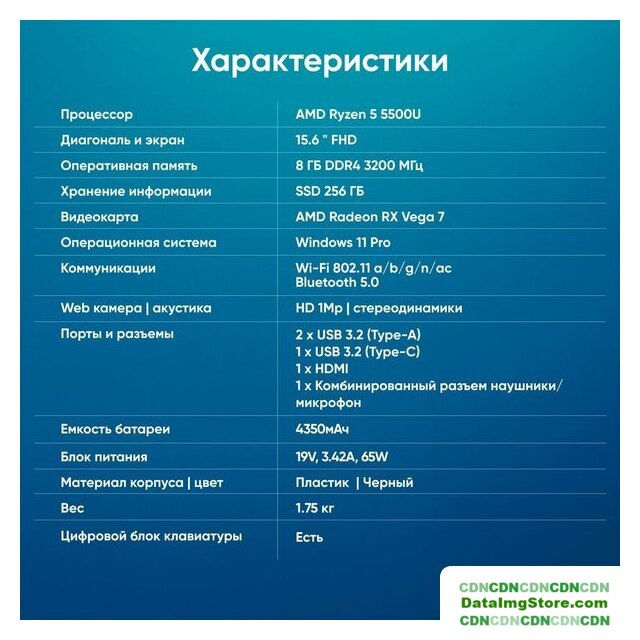 15.6" 1920 x 1080, IPS, 60 Гц, AMD Ryzen 7 5700U, 16 ГБ DDR4, SSD 512 ГБ, видеокарта встроенная, без ОС, цвет крышки серый, аккумулятор 42 Вт·ч