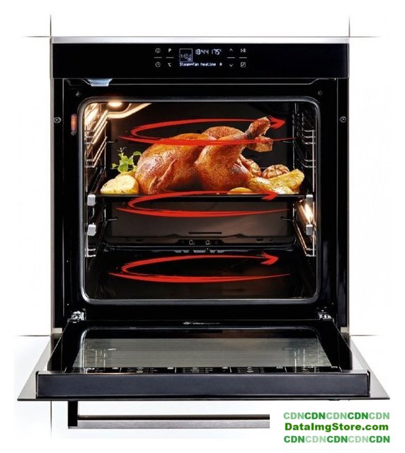 электрический с конвекцией, приготовление на пару, объем 72 л, утапливаемые переключатели, 9 режимов, очистка каталитическая, 3 стекла в дверце, направляющие проволочные + телескопические, термощуп
