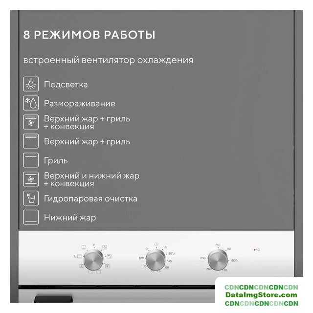 | Режимы работы | нижний нагрев, двухсторонний нагрев + конвекция, размораживание |