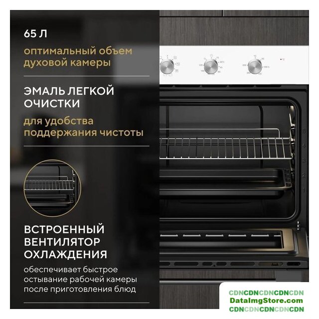 электрический статический, объем 62 л, 3 режима, очистка ручная, 2 стекла в дверце, направляющие рельефные