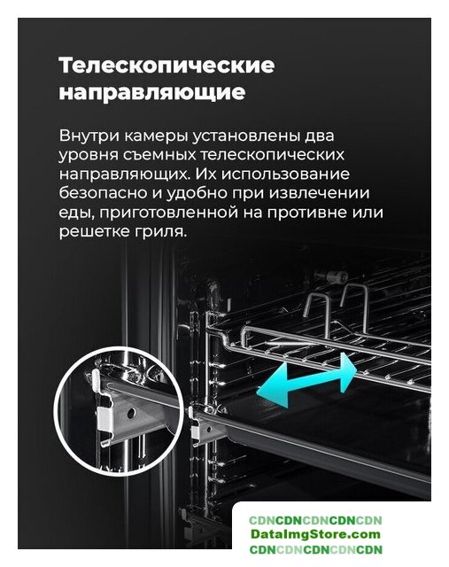 электрический с конвекцией, объем 72 л, утапливаемые переключатели, 9 режимов, очистка ручная, направляющие проволочные