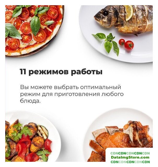 Режимы работы | нижний нагрев, двухсторонний нагрев, большой гриль, вентиляционный нагрев, гриль + конвекция, нижний + вентиляционный нагрев, двухсторонний нагрев + конвекция, размораживание, предварительный разогрев духовки, подготовка теста |