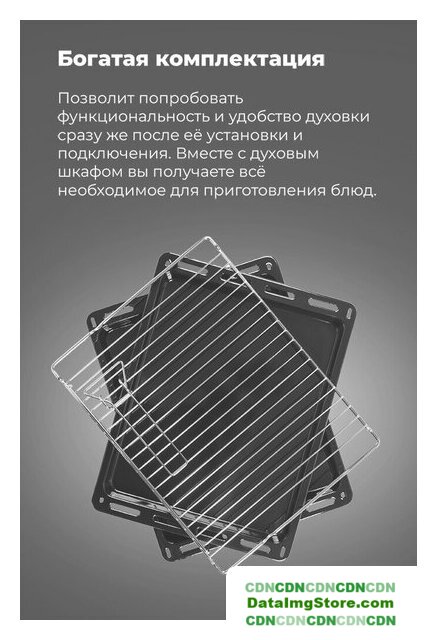 Комплектация | стандартный противень, глубокий противень, решетка, приспособление для извлечения противней |
