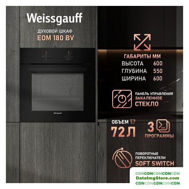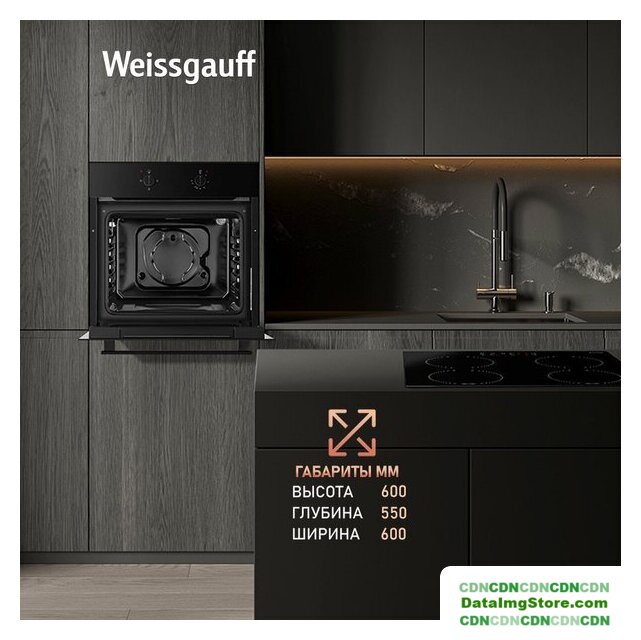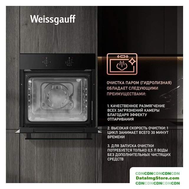 электрический с конвекцией, объем 60 л, 6 режимов, очистка ручная, проволочные направляющие, энергопотребление A