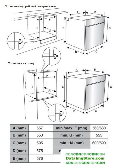 Размеры ниши для встраивания |