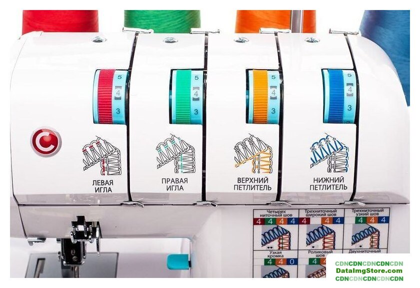 оверлок; рабочих нитей: 2, 3, 4; нитей для плоского шва: 2, 3; максимальная ширина строчки: 7 мм; максимальная длина строчки: 5 мм; регулировка давления лапки; скорость шитья: 1300 об/мин
