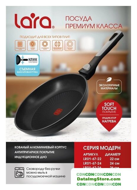 стандартная, алюминий, покрытие фторопласт, 24 см, бакелитовая ручка
