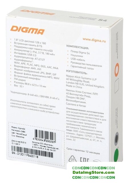 экран 1.5" TFT 128 x 128, поддержка карт памяти, радио, BT, время работы 20 часов