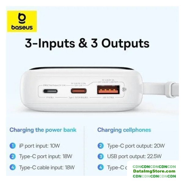 20000 мА·ч (74 Вт·ч), выходы: 3 x 5V/9V/10V/12V (3000 мА), быстрая зарядка