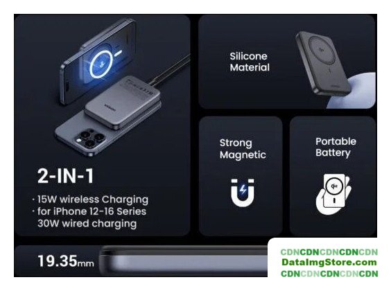 20000 мА·ч (74 Вт·ч), выходы: 1 x 5V/9V/12V (2400 мА), быстрая зарядка, беспроводная зарядка, поддержка MagSafe, крепление на смартфон