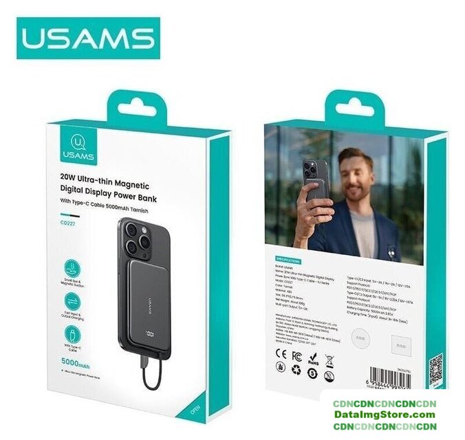 5000 мА·ч (19.25 Вт·ч), выходы: 1 x 5V/9V/12V (2400 мА), быстрая зарядка, беспроводная зарядка, поддержка MagSafe, крепление на смартфон