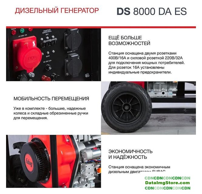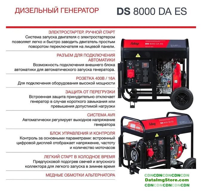 дизельный, исполнение: открытое, 6.5 кВт, запуск: ручной/электростартер, время непрерывной работы: 7 ч, 119 кг