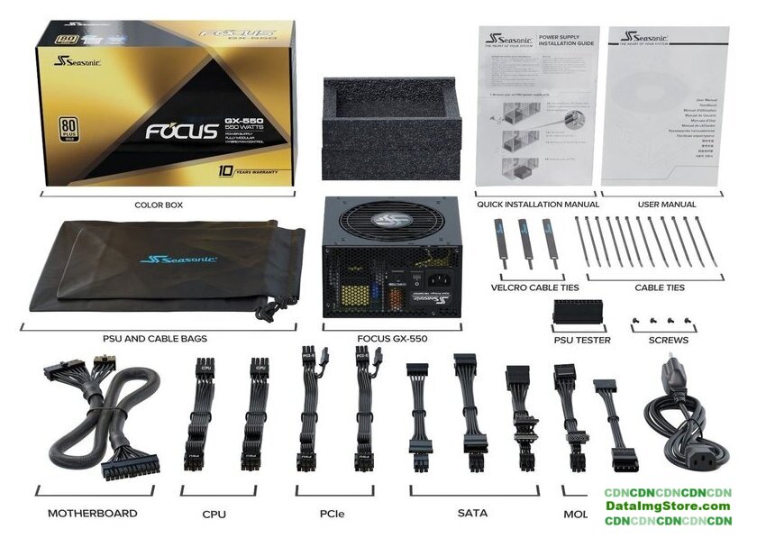ATX 850 Вт, активная PFC, золотой сертификат, вентилятор 1x120 мм, модульные кабели, 1x 12В 70.5А, 1x PCIe Gen5