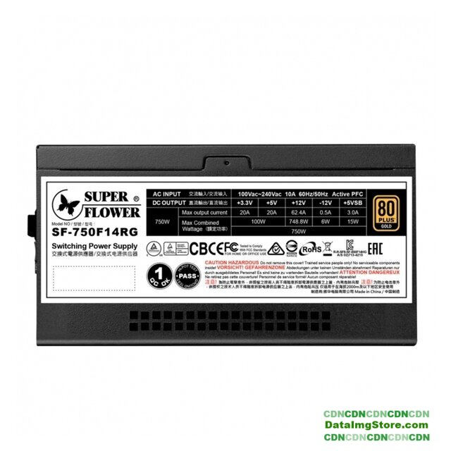 ATX 750 Вт, активная PFC, золотой сертификат, вентилятор 1x120 мм, модульные кабели, 1x 12В 62.5А, 1x PCIe Gen5