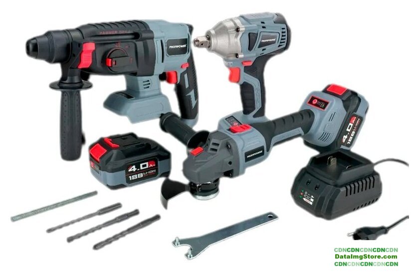 | Состав набора | гайковерт, перфоратор, угловая шлифовальная машина |