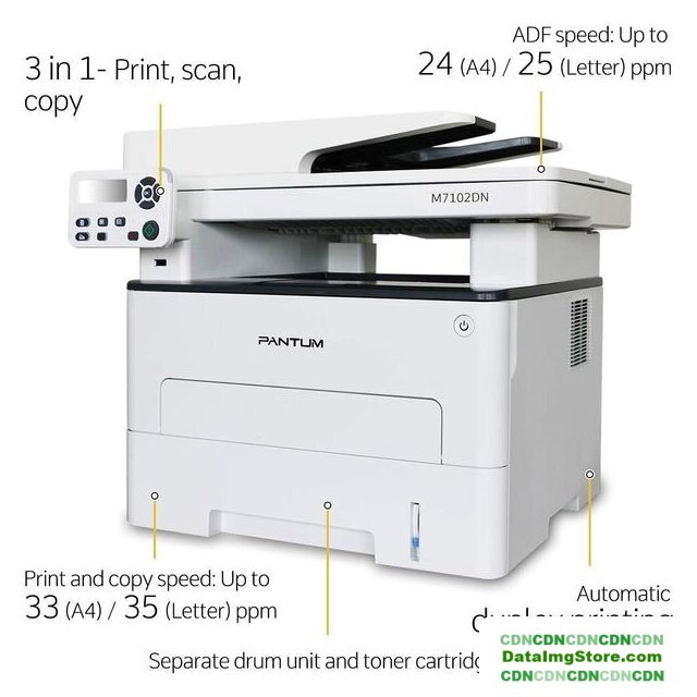 МФУ, лазерный, черно-белый, формат A4 (210x297 мм), скорость ч/б печати 33 стр/мин, разрешение 1200 dpi, LAN