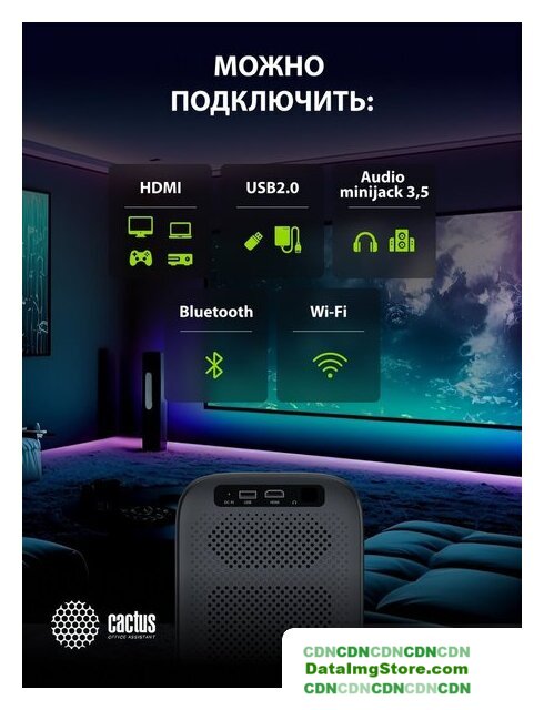 матрица LCD, WXGA (1280x720), светодиодный (LED), яркость 350 ANSI лм, контраст 1500:1, расстояние 1.1-3 м, экран 40-110", Wi-Fi