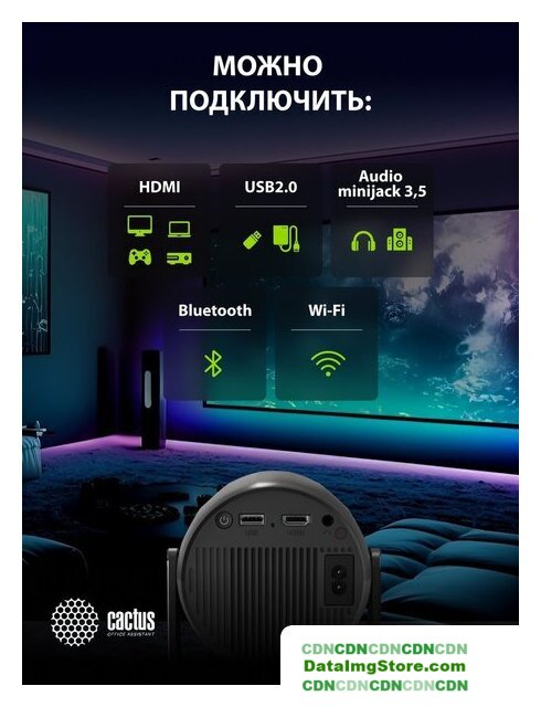 для домашнего кинотеатра, матрица LCD, FullHD (1920x1080), светодиодный (LED), яркость 350 ANSI лм, контраст 2000:1, расстояние 1.5-4 м, экран 45-120", Wi-Fi, Airplay