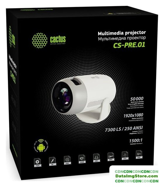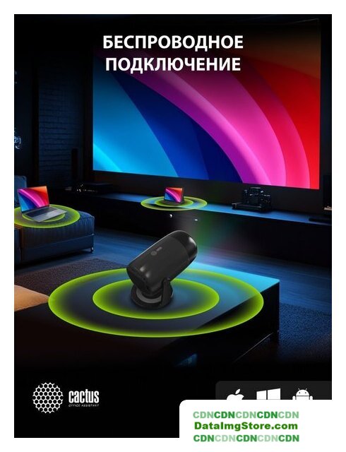 матрица LCD, WXGA (1280x720), светодиодный (LED), яркость 350 ANSI лм, контраст 1500:1, расстояние 1.1-3 м, экран 40-110", Wi-Fi