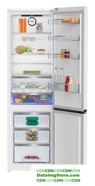 отдельностоящий, полный No Frost, электронное управление, класс A++, полезный объём: 320 л (220 + 100 л), зона свежести, перенавешиваемые двери, лоток для яиц, 59.5x65x186 см, белый