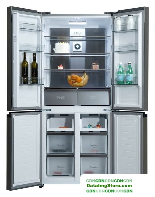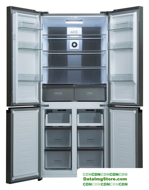 отдельностоящий, полный No Frost, электронное управление, класс A++, полезный объём: 512 л (364 + 148 л), инверторный компрессор, зона свежести, подставка-лоток для бутылок, лоток для яиц, 91x69x190 см, нержавеющая сталь
