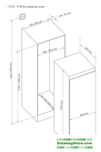встраиваемый, скользящие направляющие, без No Frost, электронное управление, класс A++, полезный объём: 254 л (185 + 69 л), инверторный компрессор, зона свежести, перенавешиваемые двери, полка для вина, лоток для яиц, 54x54.5x177 см, белый