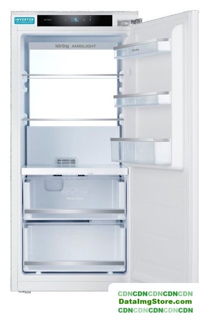 встраиваемый, скользящие направляющие, без No Frost, электронное управление, класс A++, полезный объём: 254 л (185 + 69 л), инверторный компрессор, зона свежести, перенавешиваемые двери, полка для вина, лоток для яиц, 54x54.5x177 см, белый