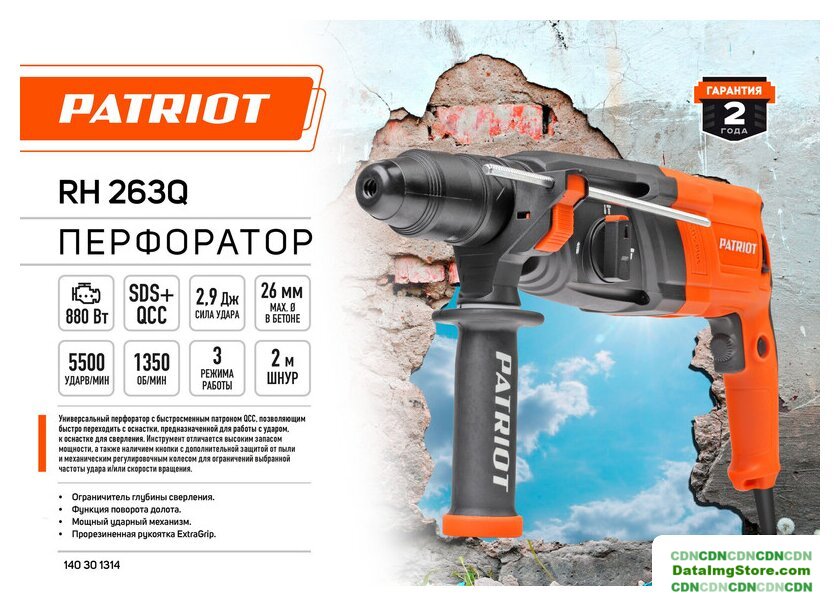 1100 Вт, питание: сеть, 5300 ударов/мин, энергия удара: 3.5 Дж, 4200 г