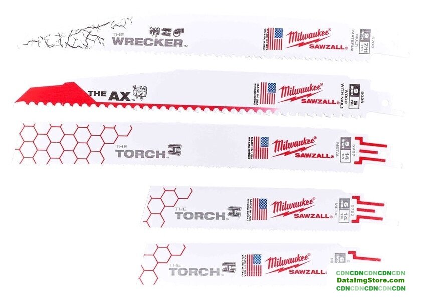 для сабельной пилы, 5 шт, полотно биметалл (BIM), обрабатываемый материал дерево/металл/пластмасса, хвостовик L-образный