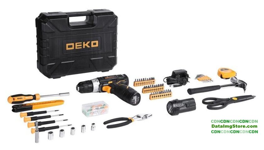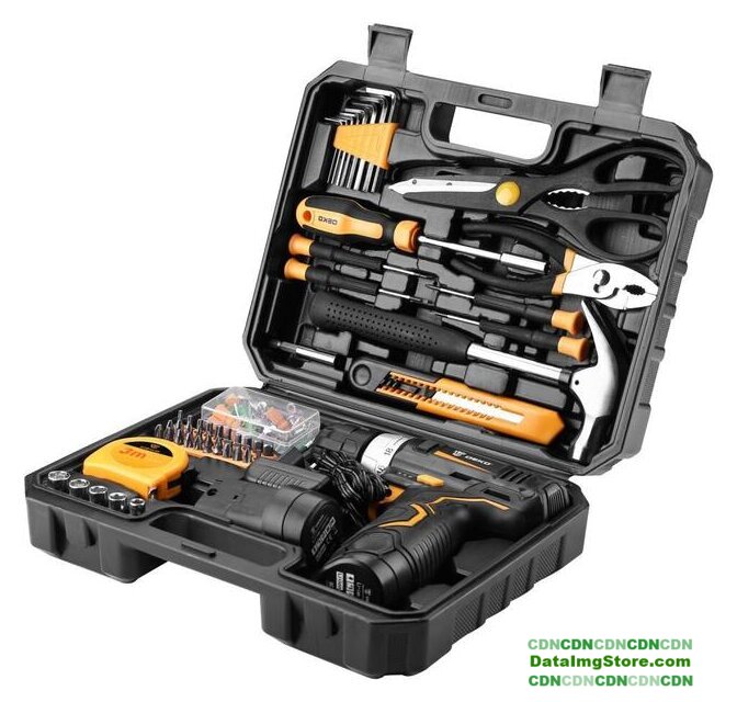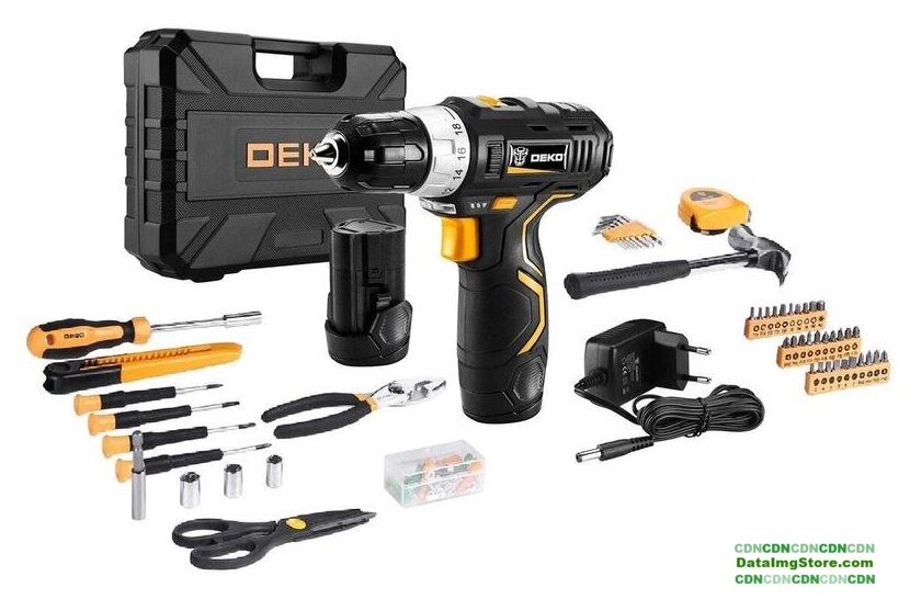 Комплектация | Дрель-шуруповерт;Аккумулятор - 2 шт;Зарядное устройство;Инструкция;Кейс.Поставляется с набором в 104 предмета:Шестигранные ключи 1.5-6мм - 8шт;Ножницы 9,5" - 1шт;Плоскогубцы - 1шт;Держатель бит 6,35 мм - 1шт;Прецизионные отвертки PH00, 0; SL2,4; 3,0;Молоток с гвоздодером - 1шт;Магнитный держатель бит 60мм - 1шт;Нож строительный 18мм - 1шт;Крепежи - 50шт;Биты SL3; 4; 5; 6; 6; 7; PH0; 1; 2; 2; 2; 3; 3; PZ0; 1; 2; 2; 2; 3; 3;Биты T10; 15; 20; 25; 30; H3; 4; 5; 6;Адаптер 25мм - 1шт;Измерительная лента 3м - 1шт;Головки 6,7,8,9,10мм 1/4". |