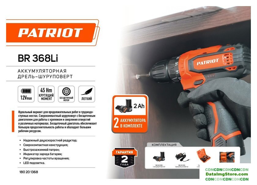 | Комплектация | Дрель-шуруповерт аккумуляторная;Аккумулятор 2шт.;Зарядное устройство;Инструкция;Кейс |