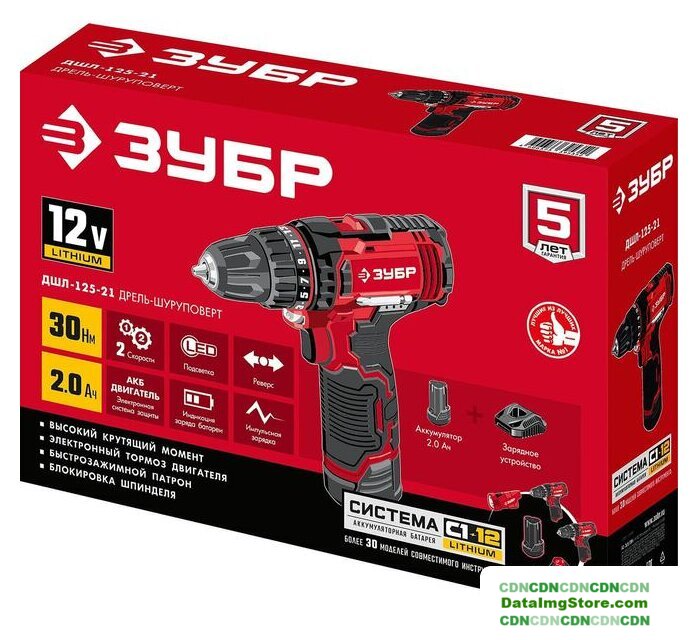 дрель-шуруповерт, аккумулятор 12V, Li-ion, патрон быстрозажимной, 2 скорости, режимы: сверление/шуруповерт