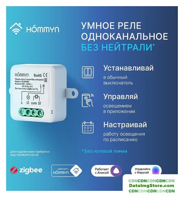 подключение к Wi-Fi, соединение ZigBee, управление через Яндекс Алиса/Mail.ru Маруся, размещение внутри помещения, питание: сеть 100-240В