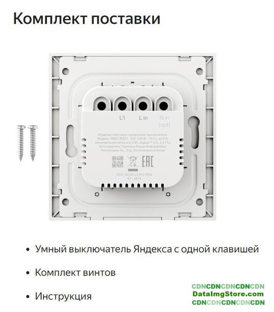 | Комплектация | Умный выключатель Яндекса с одной клавишейКомплект винтовИнструкция |