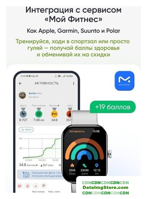 | Спортивные профили | кардио тренировки, ходьба, гребля, йога, бег, велоспорт |
