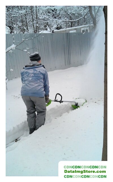 ручной, аккумуляторный двигатель, захват 30x15 см, выброс на 6 м