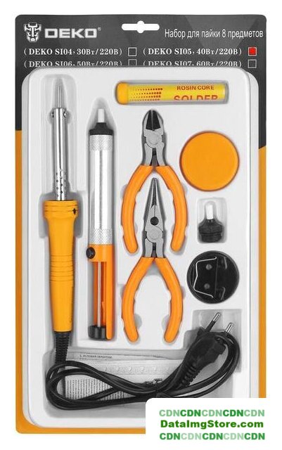 | Комплектация | Паяльник - 1шт.Подставка под паяльник - 1 шт.Экстрактор припоя - 1 шт.Сменный наконечник экстрактора припоя - 1 шт.Канифоль - 1 шт.Припой спиралью - 1 шт.Бокорезы - 1 шт.Тонкогубцы - 1 шт |
