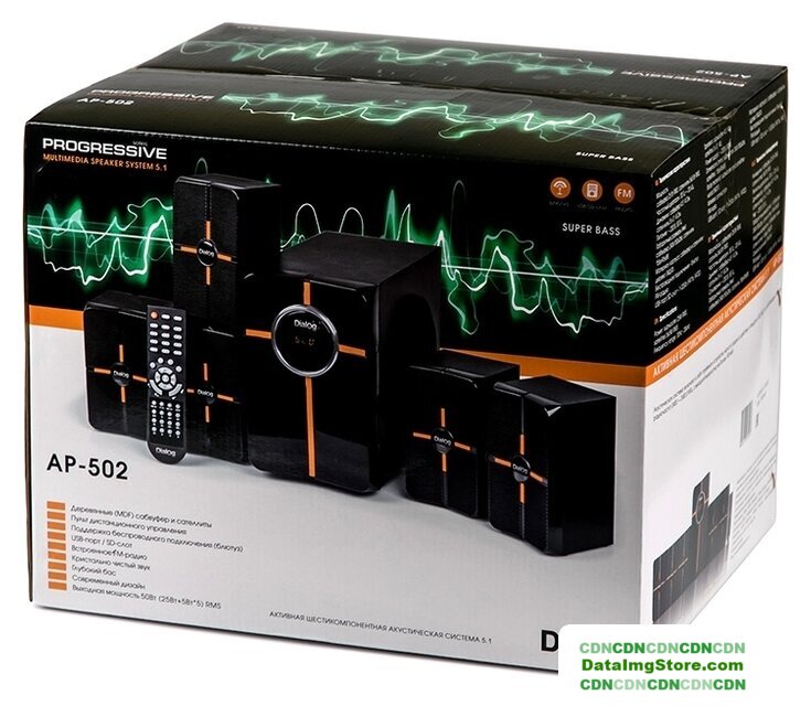 | Комплект поставки | сабвуфер, 2 фронтальных сателлита, 2 тыловых сателлита, центральный сателлит (все сателлиты с несъёмными проводами для подключения), кабель 2RCA->стереоджек 3.5мм - 3 шт., радио антенна, пульт ДУ, батарейки ААА - 2 шт., гарантийный талон + руководство пользователя |