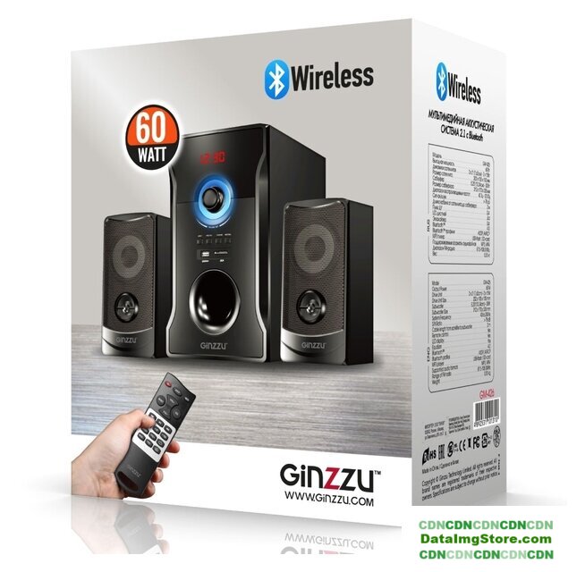 2.1, 40 Вт, подключение по USB, пульт, радио, BT, карты памяти