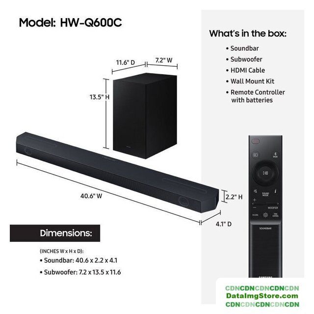 Комплект поставки | - звуковая панель- беспроводной сабвуфер- пульт ДУ- батарейки для пульта ДУ- кабель HDMI- адаптер питания- кабель питания (2 шт.)- набор для настенного крепежа- документация |