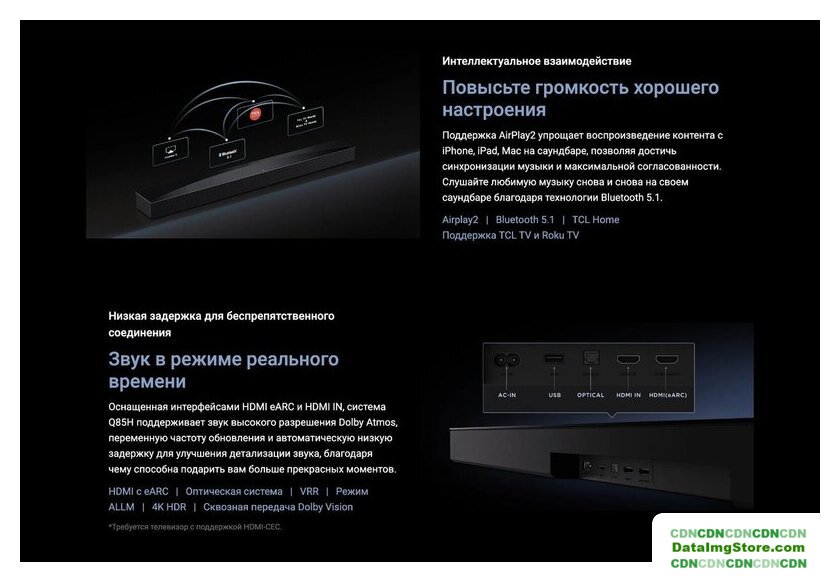 саундбар 5.1.2, 450 Вт, частота 20-40000 Гц, Bluetooth, Wi-Fi, USB, HDMI ARC, HDMIx1, цвет черный