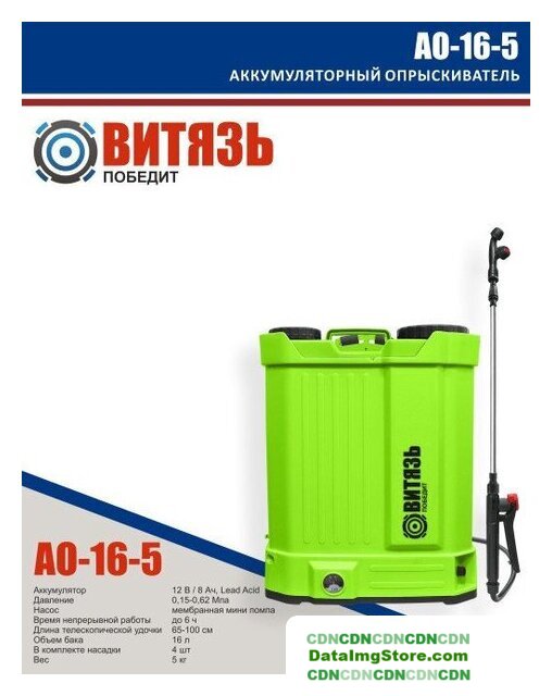 аккумуляторный, 12 л, 6 бар, телескопическая штанга, зеленый, 4.6 кг