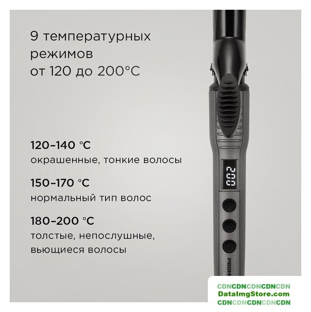 стайлер для завивки, 40 Вт, турмалин, регулировка температуры: 6 режимов, максимальная температура: 220 °С
