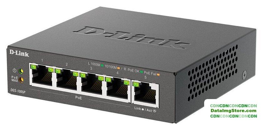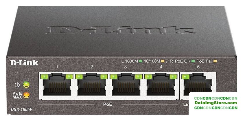 неуправляемый, настольный/настенный, матрица 10 Гбит/с, 7.44 Mpps, 5xGbit, PoE, бюджет 65 Вт