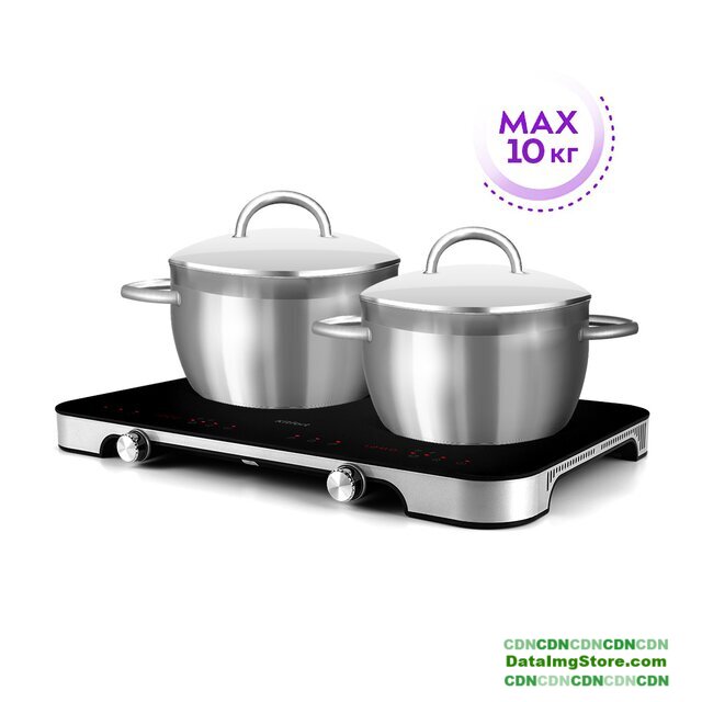 индукционная плита, 2 конфорки, 4000 Вт, 60×35.5×5.5 см