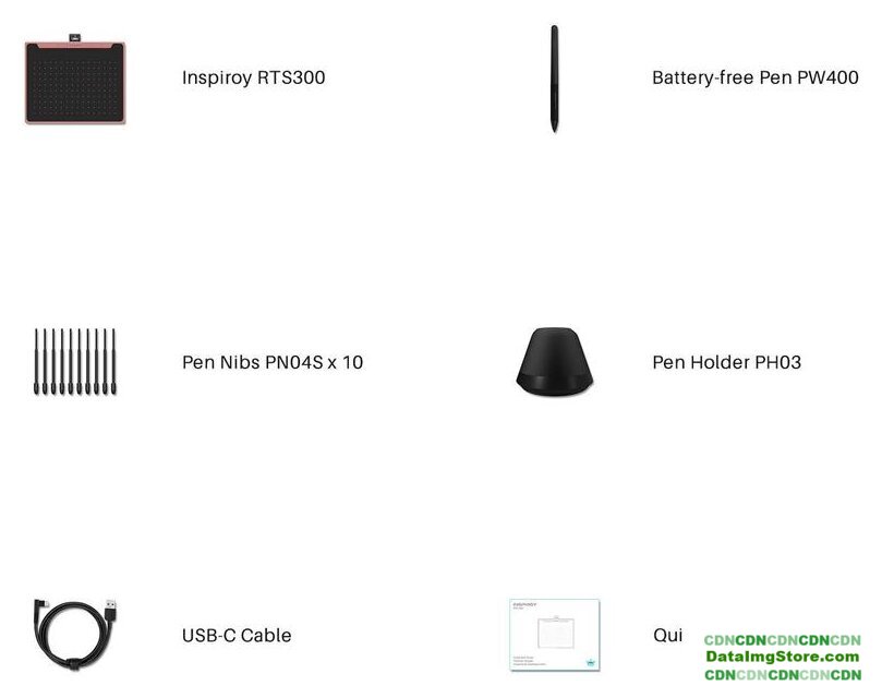 | Комплект поставки | Графический планшет - 1 штРучка-дигитайзер PW400 - 1 штНаконечники для ручки - 10 штПодставка под перо с встроенным устройством для замены наконечников - 1 штКабель (USB-USB Type-C) - 1 штРуководство по эксплуатации - 1 штГарантийный талон - 1 штИнформационный вкладыш - 1 шт |