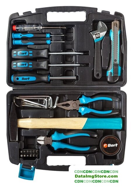Комплектация | - Отвертка (4 шт)- Тестер (1 шт)- Держатель для бит (1 шт)- Ключ разводной (1 шт)- Кусачки (1 шт)- Плоскогубцы (1 шт)- Ключ имбусовый (8 шт)- Молоток (1 шт)- Длинногубцы 160мм (1 шт)- Биты (12 шт)- Изолента (1 шт) |