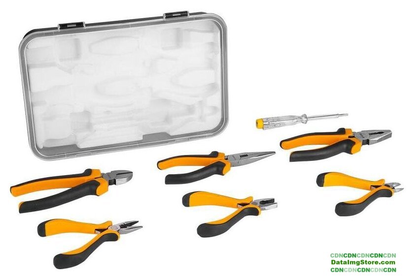 | Комплектация | - Комбинированные плоскогубцы 4.5"", 6"" - 2 шт- Длинногубцы 4.5", 6" - 2 шт- Бокорезы 4.5", 6" - 2 шт- Тестер напряжения 220В - 1 шт- Кейс |