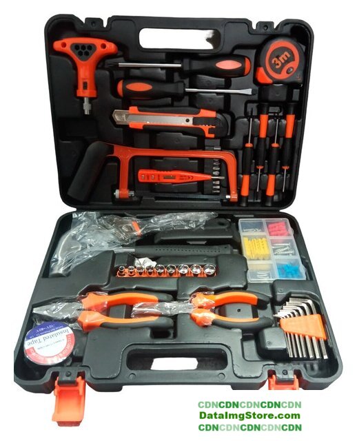 Комплектация | Длинногубцы 6" - 1штНабор ключей шестигранников - 8штМолоток-1 штОтвертка 2штОтвертка для точных работ - 4 штИндикаторная отвертка -пробник 1штИзолента 1штРулетка 3м-1штМонтажный нож-1штТорцевые головки 1/4-9штОтвертка-битодержатель -1штНабор бит 25мм 9штБита - адаптер для торцевых головок 1штНабор крепежа 1штКейс 1штНожовка по металлу- 1штплоскогубцы 6" 1шт |