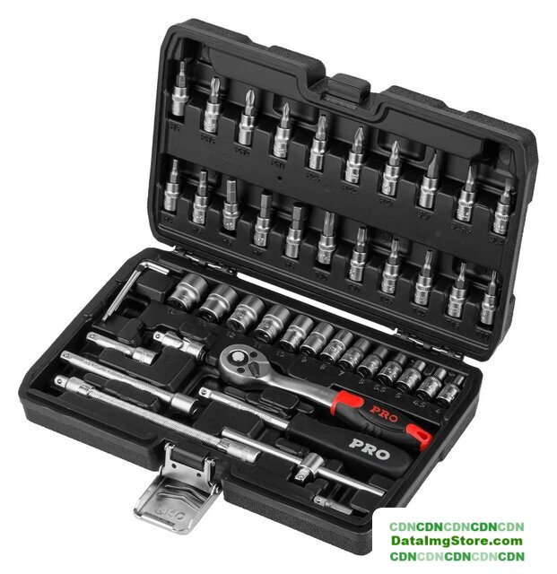 набор трещотка с головками и битами, 1/4", 46 предметов